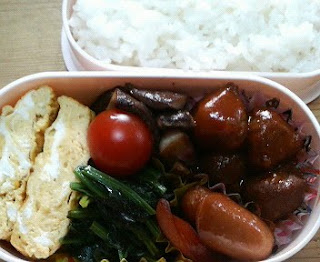 | だし巻き卵、ほうれん草のソテー、椎茸のバター焼き ミートボール、ウインナー、プチトマト |